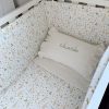 Colcha sin relleno, reversible (elegir 2 telas), puedes elegir si lo quieres con borlas y nudos a tono con la tela elegida. Medidas: Minicuna: 70×90 cm, Cuna 120 cm: 130×90 cm, Cuna 140 cm: 150×100 cm.