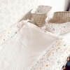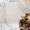Funda de cambiador a medida de tu colchón cambiador. Ajustable con gomas para mejór adaptación. Incluye una pieza de quita y pon en muselina con reverso impermeable que se sujeta a la funda con lazos, lo cual facilita el lavado sin quitar toda la funda. Se pueden comprar protectores extra.
